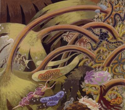 Also included is a selection of rare works from the early years of Susan's career that reflect her longstanding interest in sea-life. In the 1940s and 1950s she was commissioned to produce illustrations for two books: the first for Puffin to be entitled Shore Life in Britain (co-written with Richard Elmhirst), and the second for Sidgwick & Jackson with the provisional title The Compleat Mermaid: A Quick Book for the Underwater Naturalist in British Seas. In the event, neither of these books were published and, though some of the paintings she made for them did appear elsewhere, many others have remained unseen until now. |